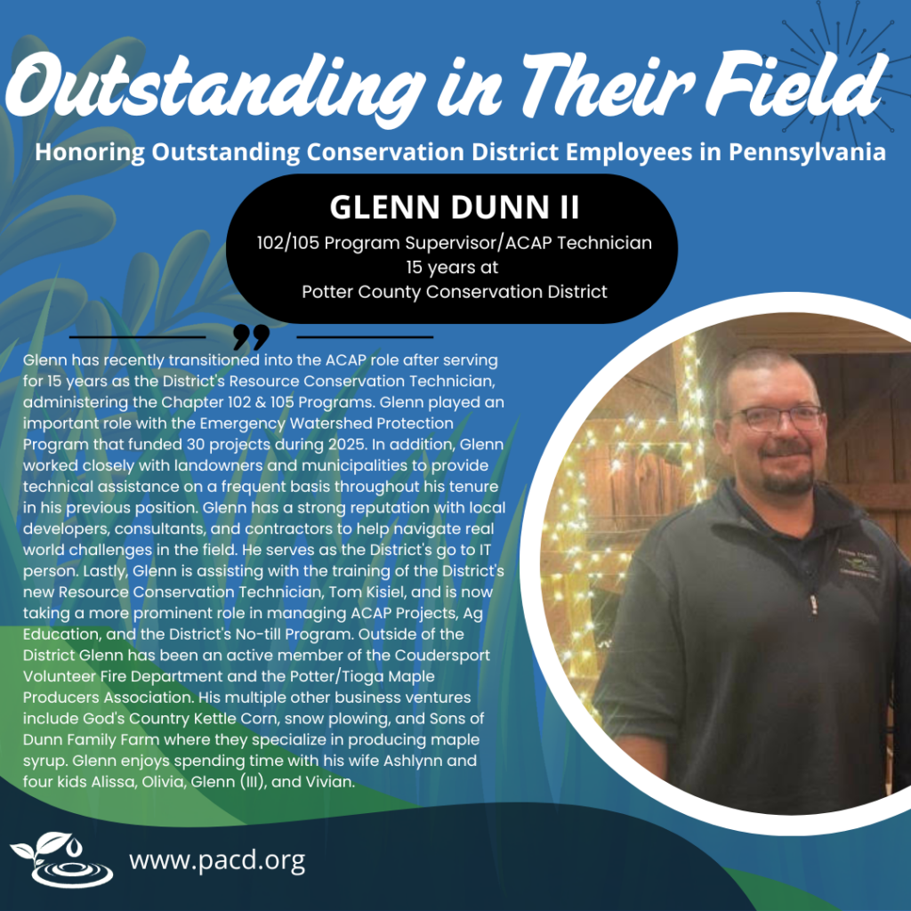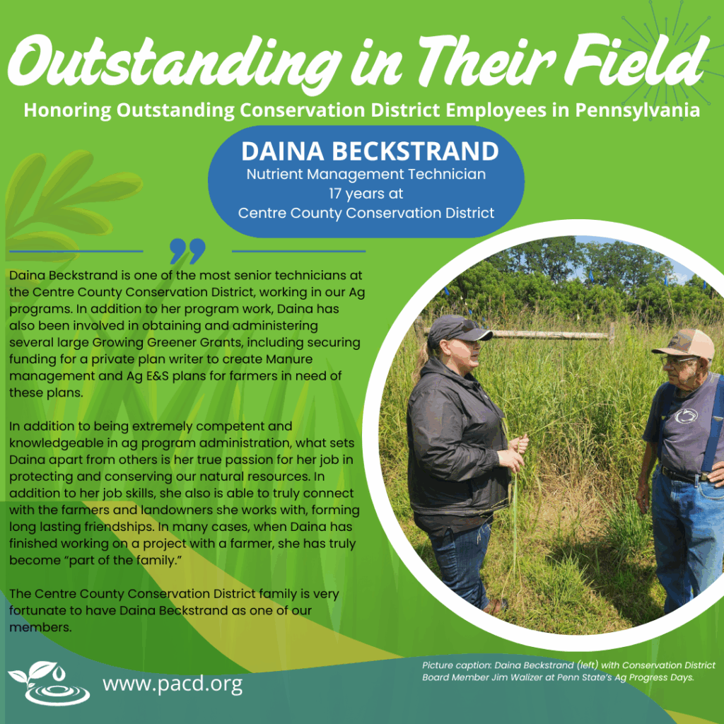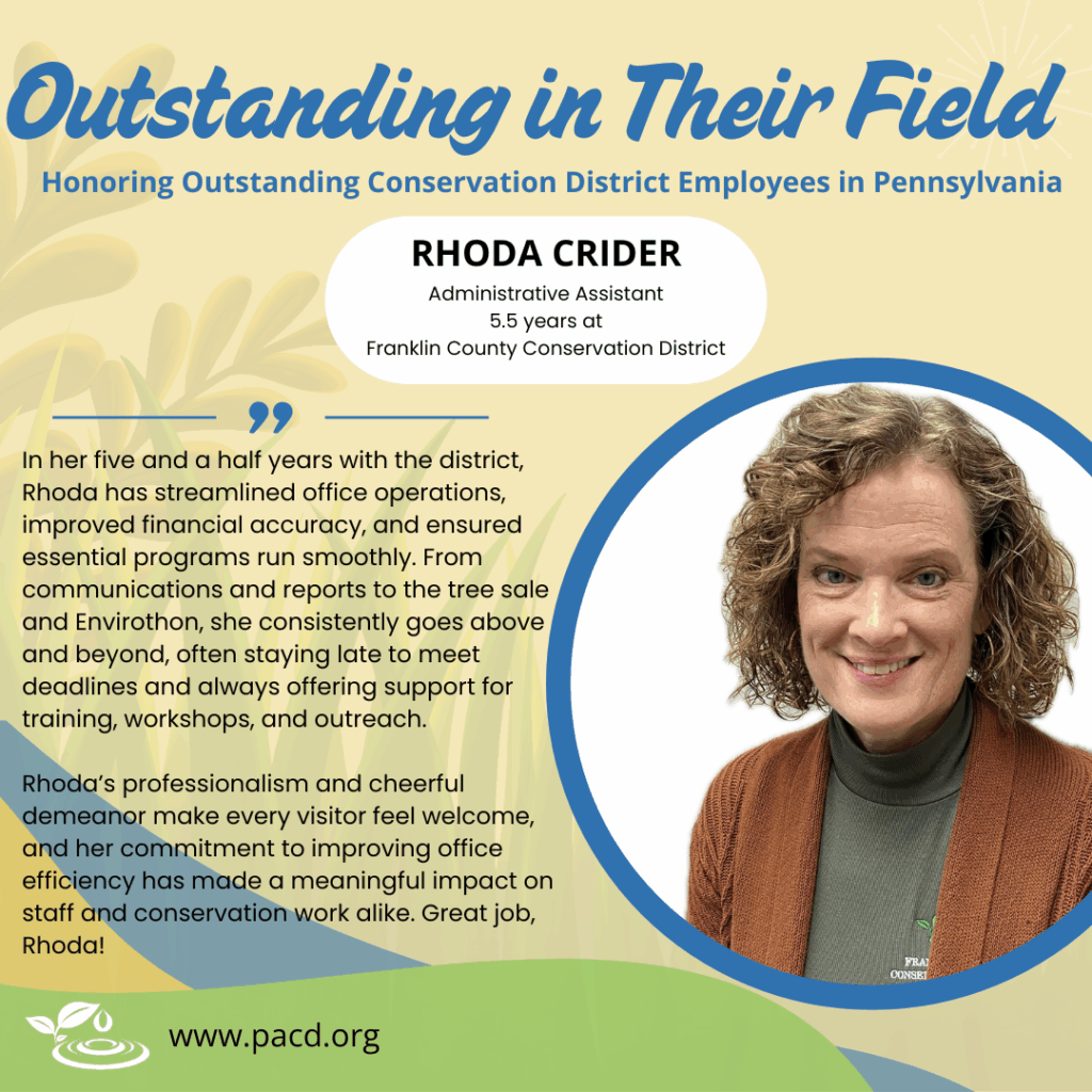Highlighting PA conservation district employees who go above and beyond. Conservation district directors, associate directors, and staff may highlight outstanding district employees in our weekly e-newsletter by using this form.