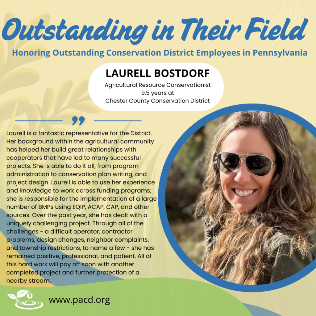 Highlighting PA conservation district employees who go above and beyond. Conservation district directors, associate directors, and staff may highlight outstanding district employees in our weekly e-newsletter by using this form.